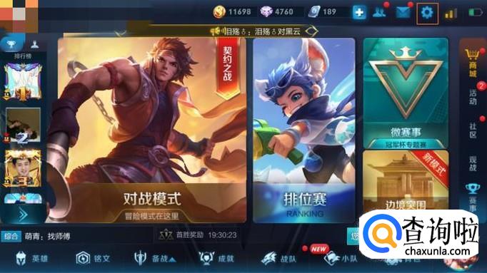 首先打开王者荣耀,去掉获得页面之后点击右上角的小齿轮,进入设置。