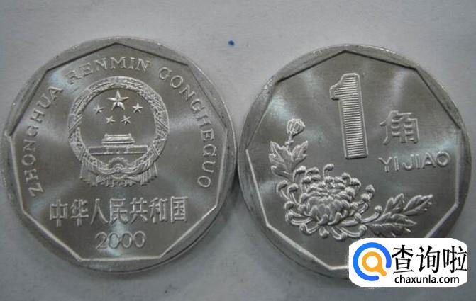 一角菊花硬币。91年回收价7元,92年回收价13元,93年回收价5元,94年回收价38元,95年回收价5元,96年回收价7元,97年回收价5元,98年回收价7元,99年回收价11元,2000年的回收价在1000元以上。