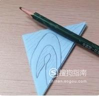 在对折好的三角形的一面上用铅笔画上其中的一片花瓣的形状,记得中间最好是要有花蕊。值得注意的是左侧是对折的中间线不要搞错,不然剪出来中间就是不连接的状态,而是断开的。