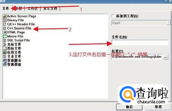 在打开的窗口中选择文件,下边一般是第四个 c++Source file,输入文件名(hellw.c),一定要以“.c”为后缀结尾