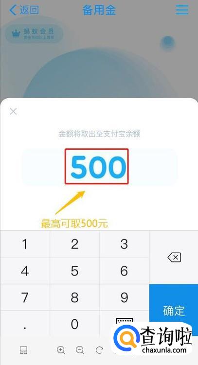 备用金最大金额是500元,而且只能免费使用7天,每个月可取用2次;