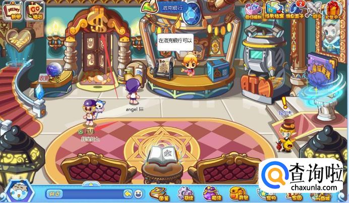 然后,找到“银行”,在页面最右面的房子就是“银行”,点击进入。