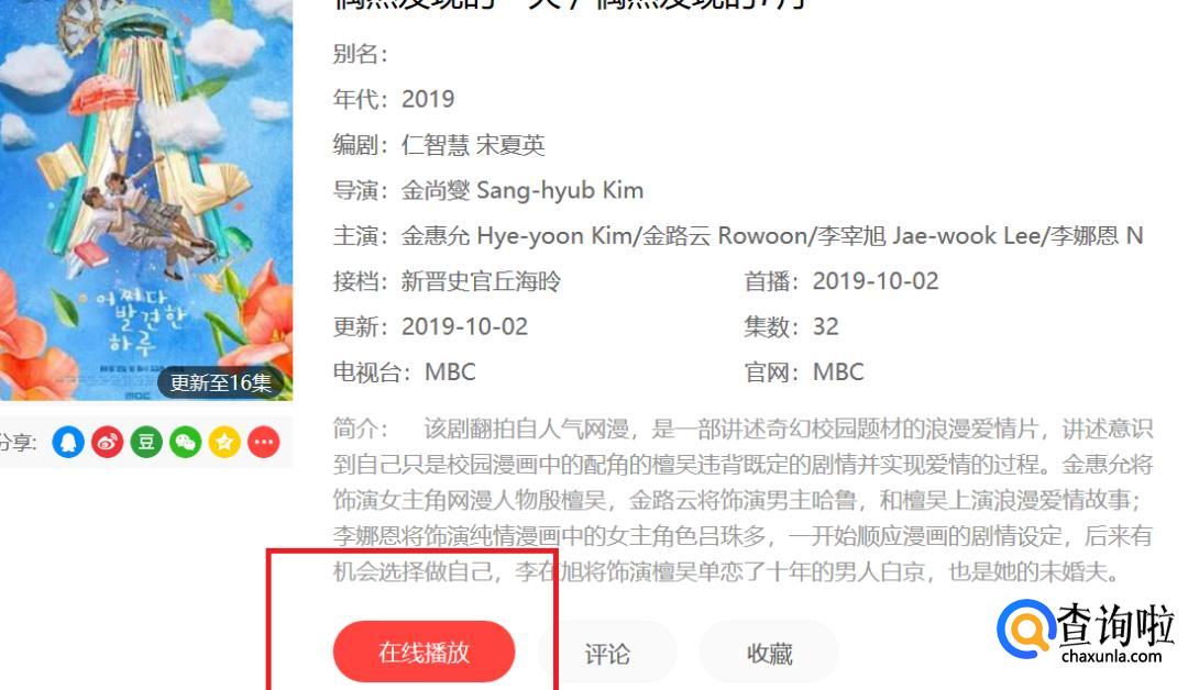 点击后会出现这个电视剧的相关消息,点击下方的立即播放,就可以播放该电视剧。在此页面下方还可收藏评论该剧。