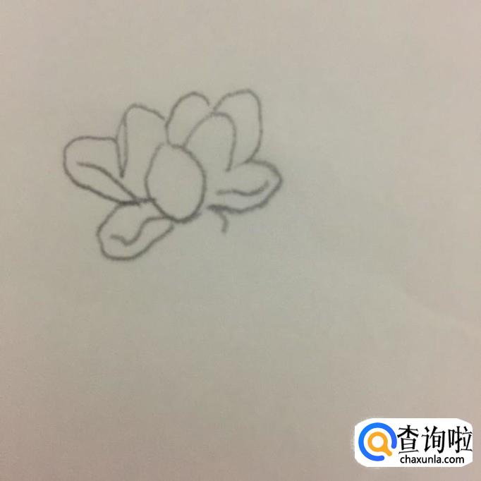 首先在a4纸上画出一朵正在开放的荷花花瓣,如下图所示。我们在画这部分的时候需要注意的是不要画得太大,因为它的大小直接决定了画出来的荷花池的大小。