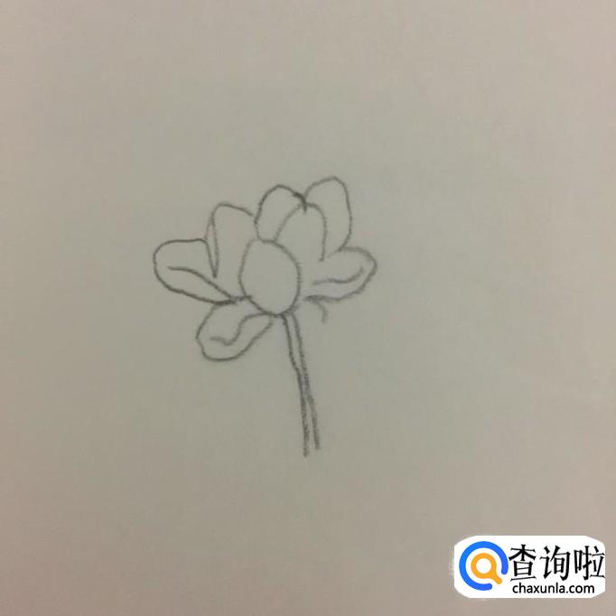 然后画出这朵荷花的枝干,如下图所示。枝干长度建议参考1.5倍的花朵高度。