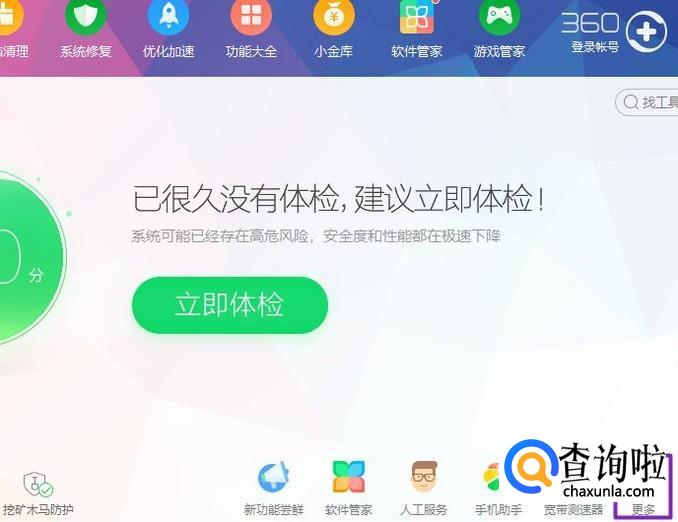 首先,我们先将U盘插在电脑的USB接口处,之后我们打开360安全卫士,然后点击更多;