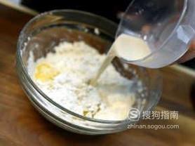 将鸡蛋打成鸡蛋液,把海苔捣碎,往面粉中倒入所有准备的材料(除海苔碎),然后像平常和面一样将它揉成面团。