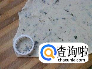 然后把面团中的气排出后,用擀面杖将它擀成薄片,再用刀把它分成一小块一小块的,用小叉子在上面弄小孔,放置10分钟。