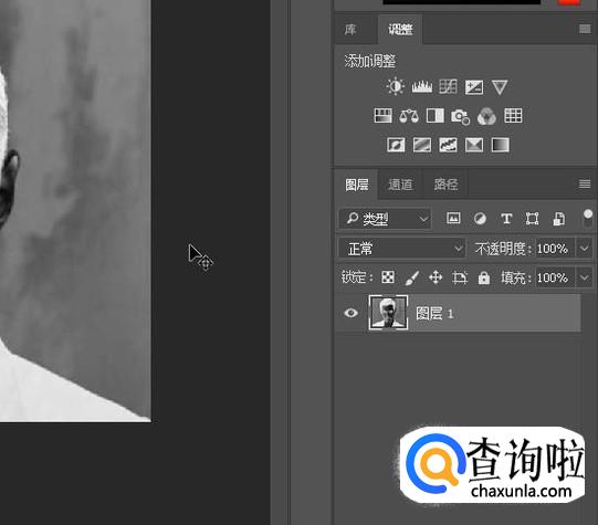 可以看到图片是黑白色的。接下来,要把这黑白色反转过来,白的变黑,黑的变白。我们可以留意下人物的头发、衣服。