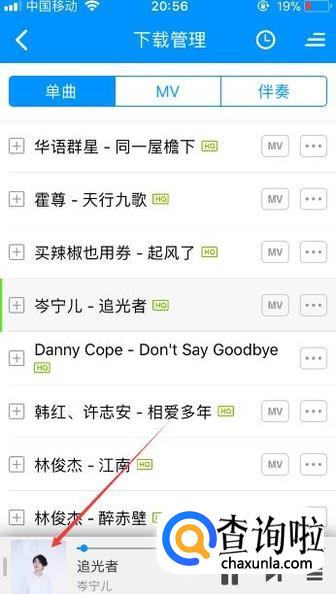 当歌曲在播放后,接着再点击左下角该歌曲演唱歌手的头像。