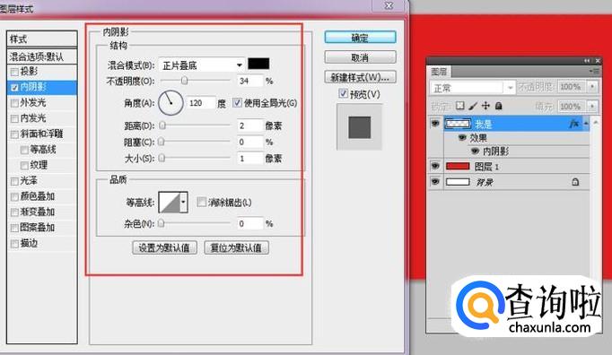 双击这个文字,点击“内阴影”,我们要根据图中显示的数值设置。