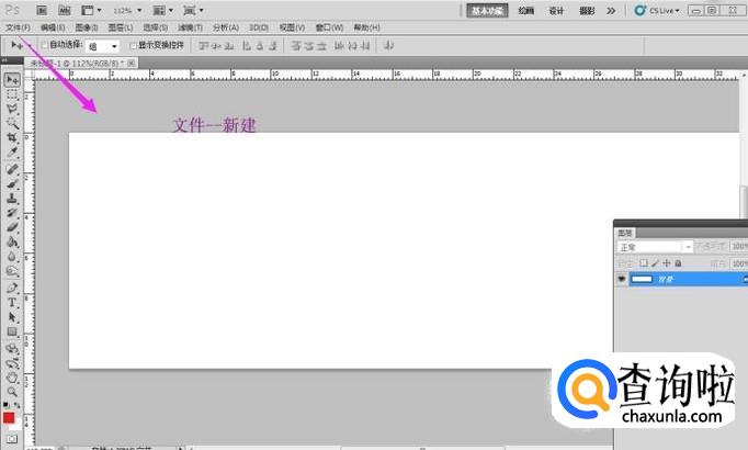 首先我们在ps软件里面新建一个文件。建议稍微大一些。默认背景图层是白色。