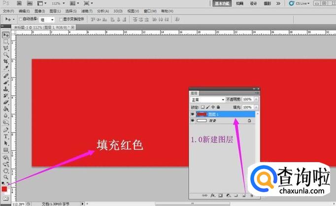 新建一个图层,我们将前景色设置为红色,填充前景色。