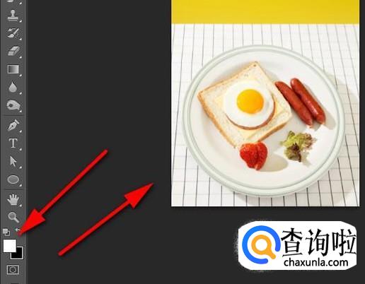 启动软件后,直接把图片素材拖入到PS操作界面中,自动生成一个图层。接下来,要把图片中的盘子给抠出来。