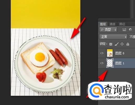 空白图层在选中状态,用椭圆选框工具选中图片上的盘子。
