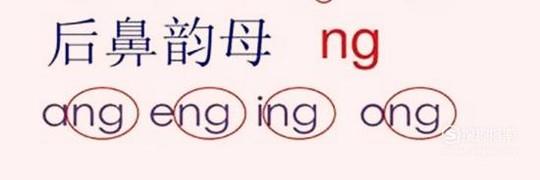 后鼻韵母ang、iang、uang、eng、ing、ueng、ong、iong。它们都以舌根浊鼻音-ng作为韵尾。