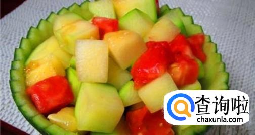 西瓜里面的果肉挖出来了以后,还可以装进其他的水果,然后做成美味可口的水果沙拉。把西瓜皮当作沙拉碗,这对于一些比较懒惰的朋友来说是非常不错的方法。
