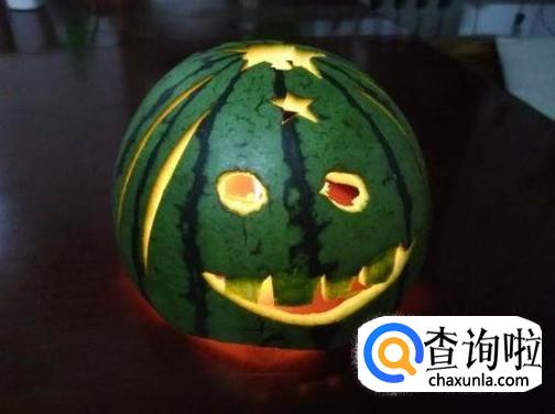 吃完西瓜以后,还可以直接用剩下来的西瓜皮做一个西瓜灯。方法就和做南瓜灯一样,只不过是把南瓜换成西瓜,做出来的西瓜灯颜色是绿色的。