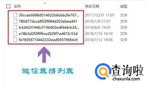 这个文件夹里面的文件就是微信表情了,我们可以直接复制然后粘贴给好友,文件就会自动转换为表情,当然如果想要直接在文件夹中查看也可以,直接将文件后缀名更改为.jpg或者.gif就转换为电脑可以查看的图片格式了;