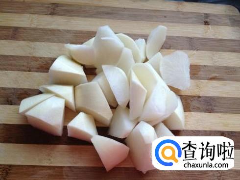 然后把白萝卜洗净放入锅中和羊肉一起炖制,调入适量盐,味精料酒搅拌均匀,用文火把羊肉和萝卜炖熟