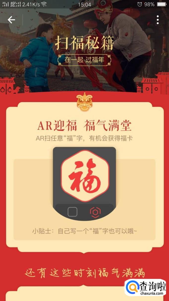 使用AR扫描任意福字、或让朋友比个“五福到”的手势都可获得福卡!