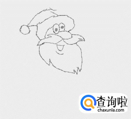 然后我们再在圣诞老人的头上画出圣诞老人的眼睛、鼻子和嘴巴,如图所示: