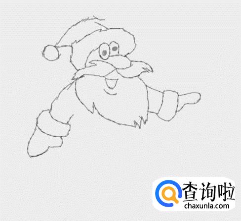 在圣诞老人的头部下面左右两侧画出圣诞老人的两只胳膊及手部,如图所示: