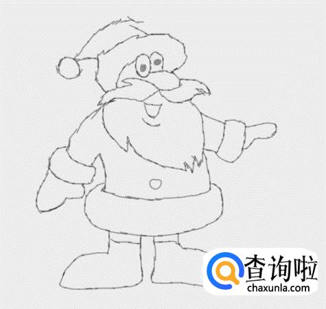 在身体下面画出圣诞老人的两条腿及脚部,这样我们就把圣诞老人画好了,如图所示: