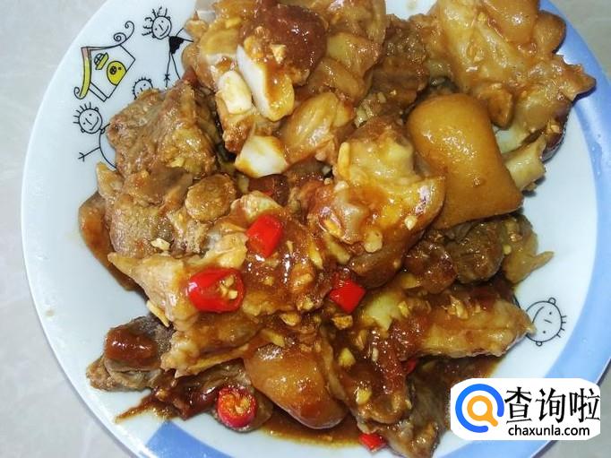 打开盖子翻炒一下,熄火。非常好吃的酸梅焖猪脚就做好了。