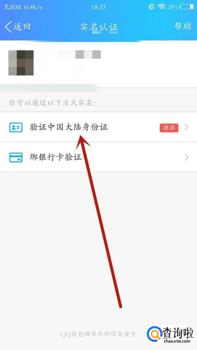 返回实名认证页面,选择一种认证方式,以“验证中国大陆身份证”为例,点击并进入。