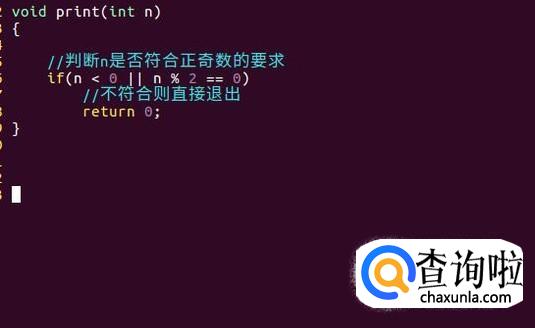 然后,对输入的n进行提前判断,若小于0或为偶数,则结束打印。