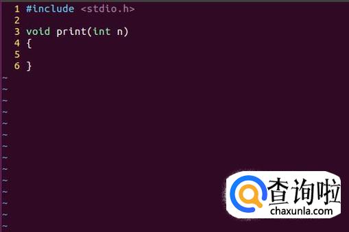 首先,输入预处理指令#include <stdio.h>与函数原型void print(int n)。