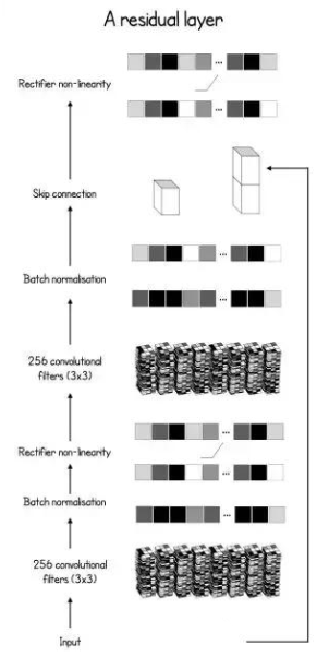特征提取模型,是个残差网络 (ResNet) ,就是给普通CNN加上了跳层连接 (Skip Connection) , 让梯度的传播更加通畅。