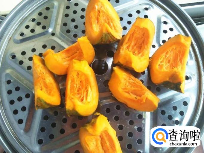 清洗一下,切成一小块一小块的,锅里加入一点水,放上蒸格,然后把小南瓜放进去蒸大概十分钟就可以了。很多人会直接放进水里煮,真的会很影响口感的,不信你自己做个实验试试就知道了。