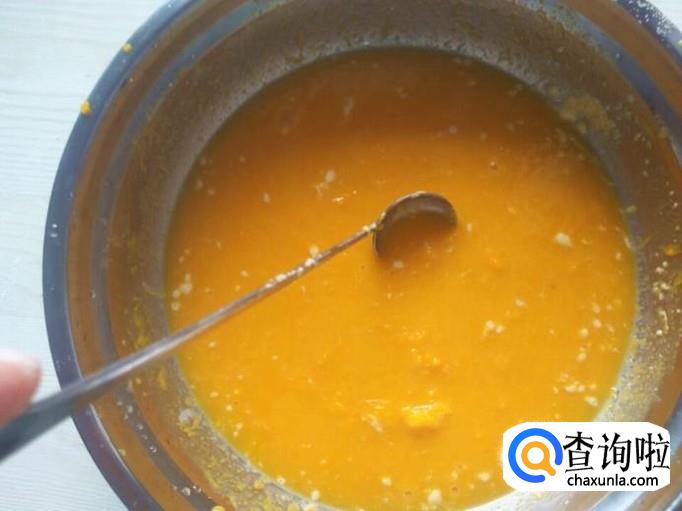 记住了,蒸馒头和面的水一定是用四十度左右的温水,然后用小勺子把酵母粉和小南瓜搅和好。