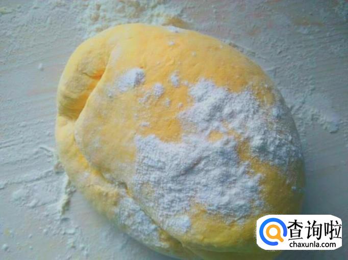 自己看一下,面团发酵好了之后,就可以开始做馒头了。因为发面的时候面比较软,所以发酵好了之后要一边揉面一边放面粉,但照样需要面揉的软一些。