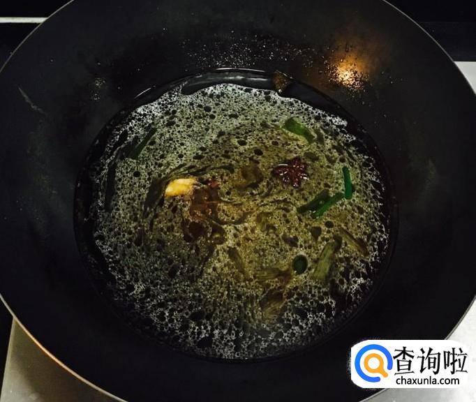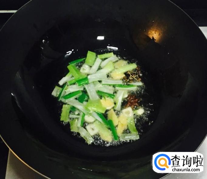 热锅加入适量的花生油放入葱段、姜片、蒜片、八角、花椒爆香,料酒、生抽、香醋烹锅再加一点白糖翻炒均匀