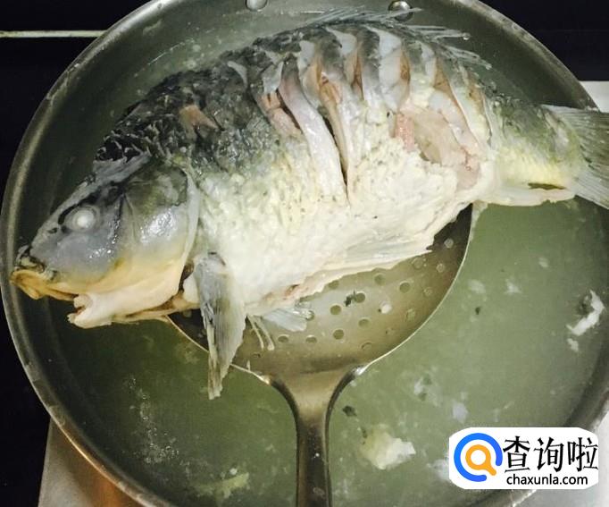锅中加水煮沸后放入改好刀的鲤鱼焯一下水去腥味儿和血水