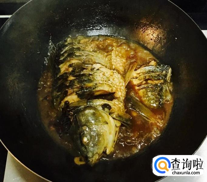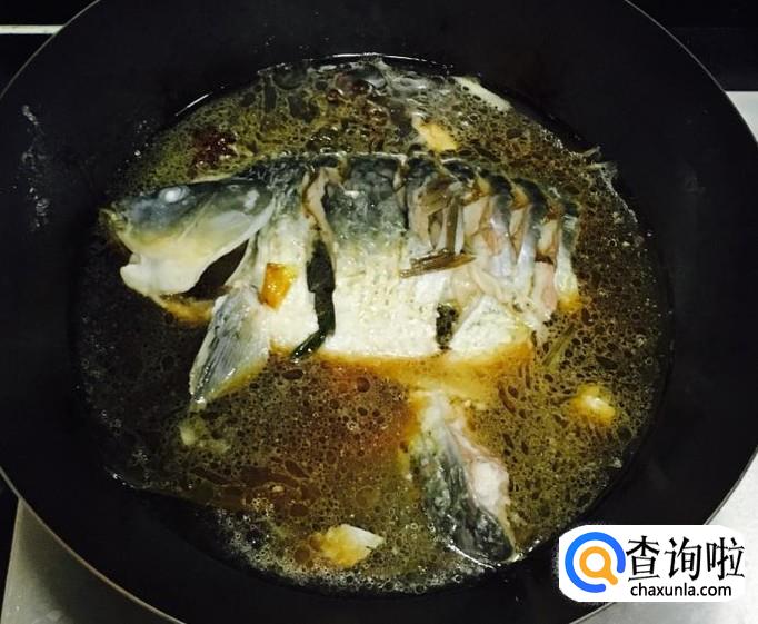 为了更好的使鱼肉入味儿,烧制过程中可以经常的用汤勺把汤汁往鱼身上浇几次