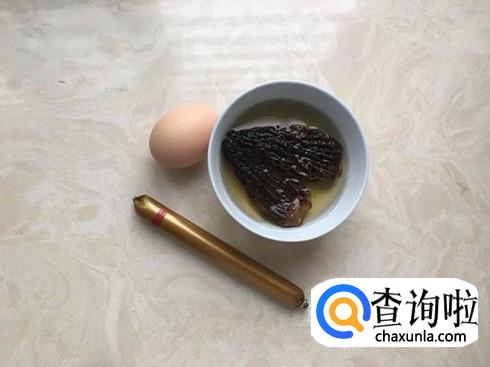把羊肚菌洗干净稍微泡软,不要泡久,泡久会失去营养,火腿和鸡蛋准备好