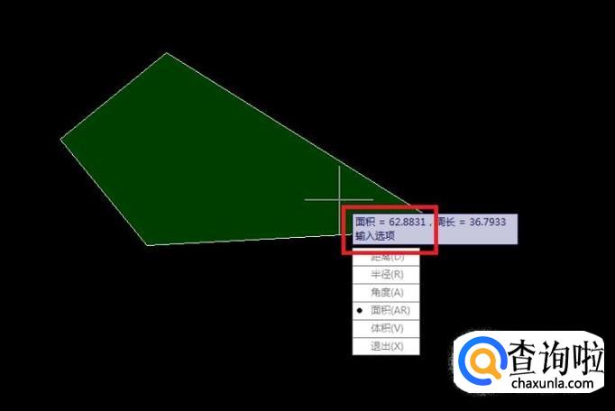 完成对图形区域的选择后,按下“Enter”回车键,即可得到该多边形的面积以及周长信息。