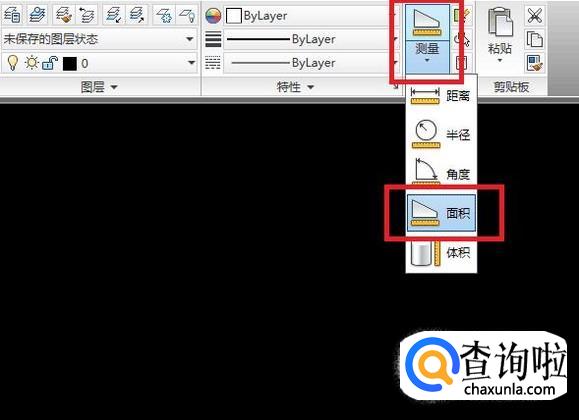 首先,我们需要在正上方工具栏中,找到并点击“测量”对应的下拉箭头,在弹出的操作选项中选择“面积”。