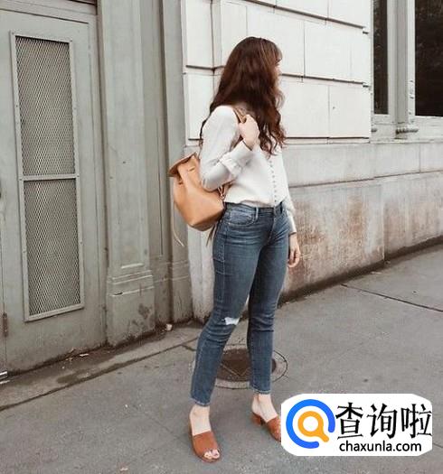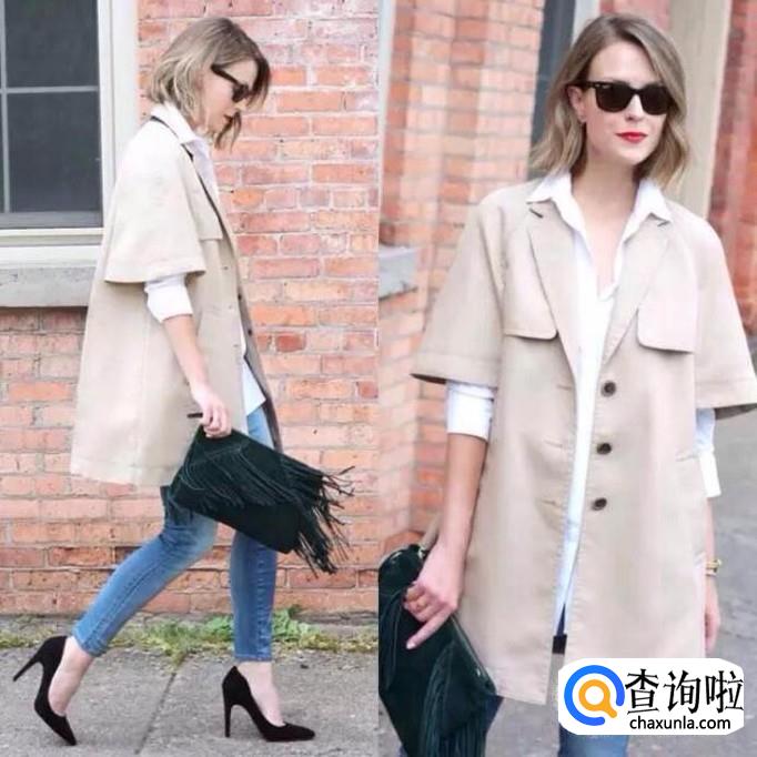 或者搭配一件纯色的短款上衣,一条深色的紧身牛仔裤,身材比例好看的同时还不胖,可谓一举两得。