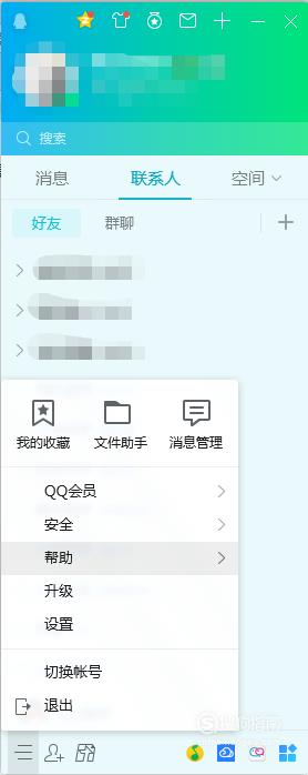 在QQ客户端左下角的菜单栏中,一级菜单“帮助”里也可以找到“我的QQ中心”入口哦