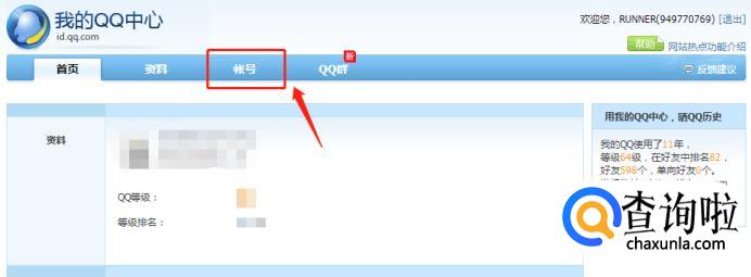 成功进入后,点击导航栏的“账号”