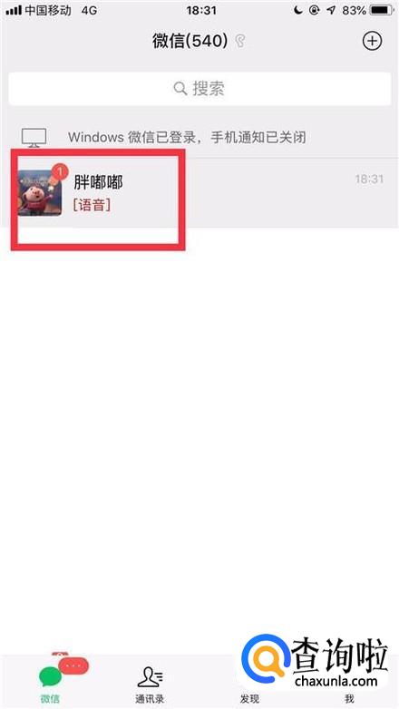 然后回到主界面,点击一个收到语音的聊天对话框。