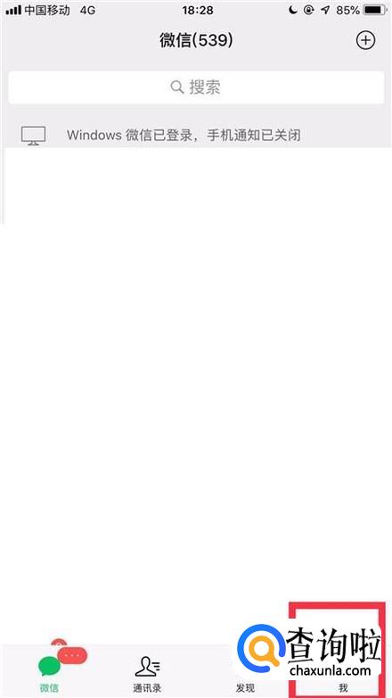 先点击微信屏幕右下方的我。