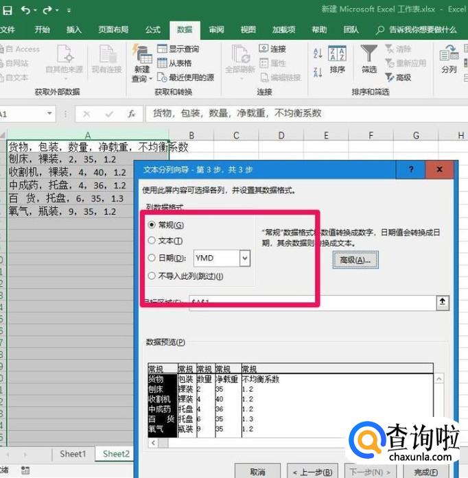 这一步的列数据格式一共有四个选项,分别为“常规”“文本”“日期”“不导入此列”可根据需求进行设置,点击完成。即可转换成功。