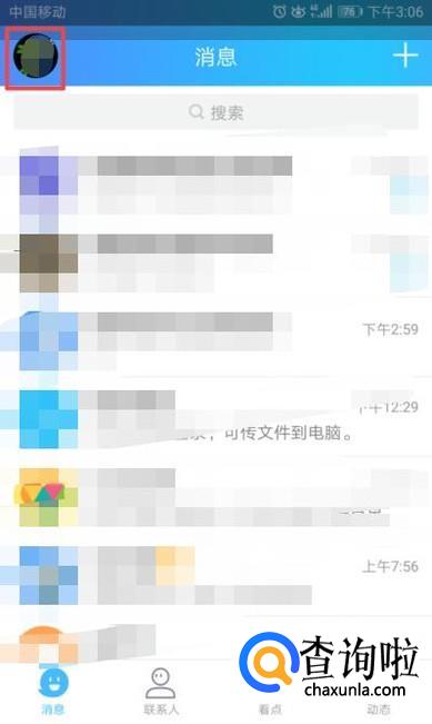首先,我们打开我们的手机QQ,然后我们点击左上角的头像;