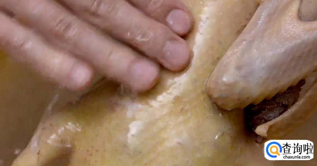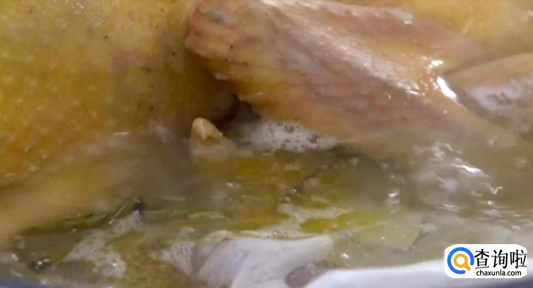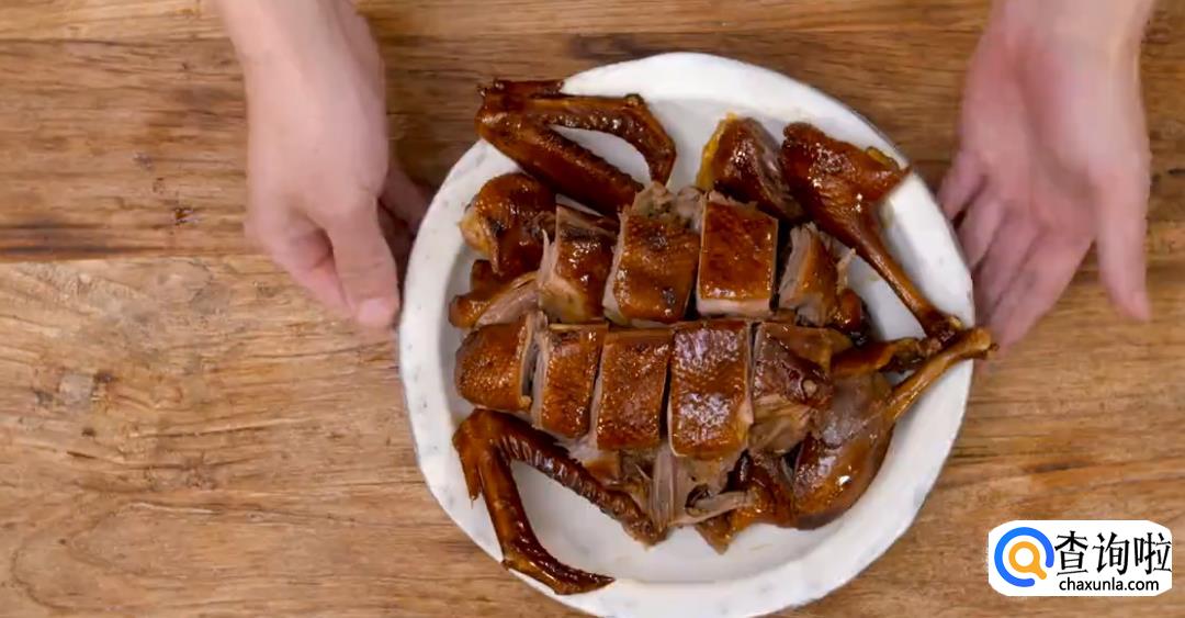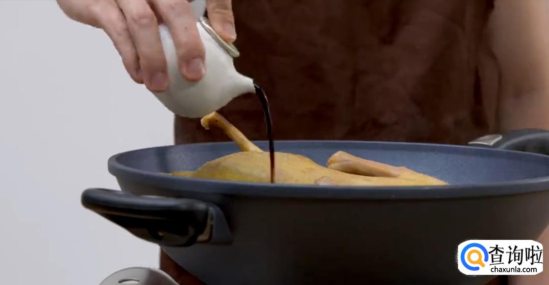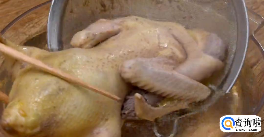 捞出鸭子,放入净水中,然后捞出沥干水份。